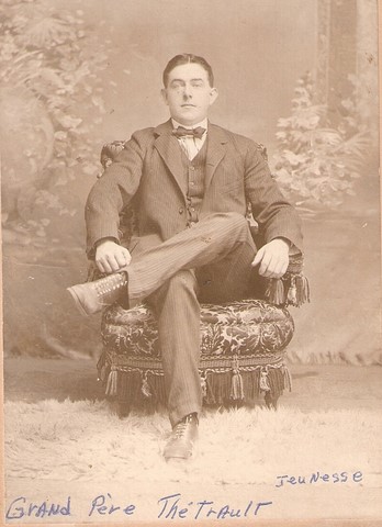 Fils d’Israël Thétrault et de Julie Langelier, Wilfrid Thétrault, artisan et casseur de pierres, est le 3e d’une famille de 10 enfants. C’est à Saint-Liboire, au Québec, qu’il a vu le jour le 22 février 1884.