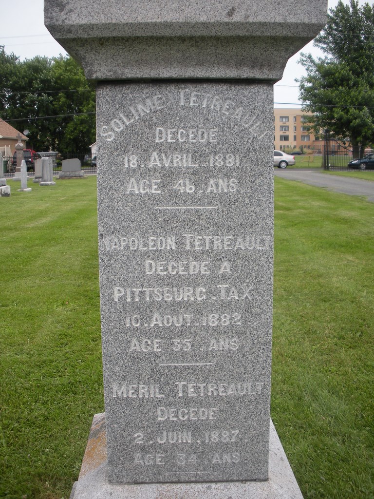 L’acte qui suit immédiatement celui du mariage nous réserve une triste surprise : de retour dans son église le 20 avril, le curé Provençal inscrit la sépulture du jeune marié. Solime Tétreault est décédé le 18 avril, le jour même de son mariage, laissant une veuve et deux jeunes orphelins. Emporté prématurément à l’âge de 45 ans, il n’aura pas eu le temps de travailler à la conversion de sa femme ni d’élever ses enfants dans la religion catholique, comme il s’était engagé à le faire quelques heures plus tôt.